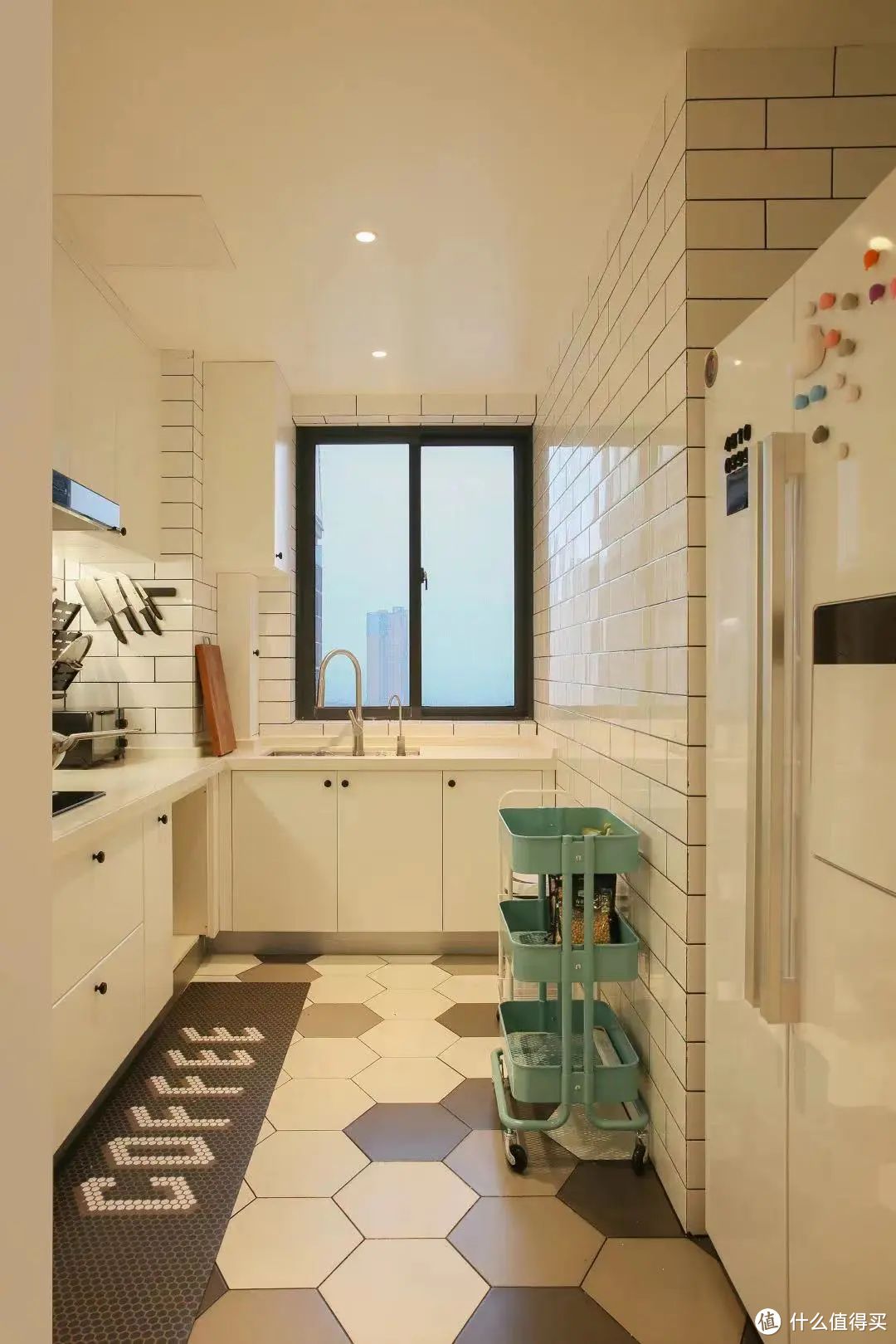 小推车和厨房最配了,用它储藏土豆、洋葱、葱姜蒜等不适合进冰箱的蔬果,拿取非常方便。